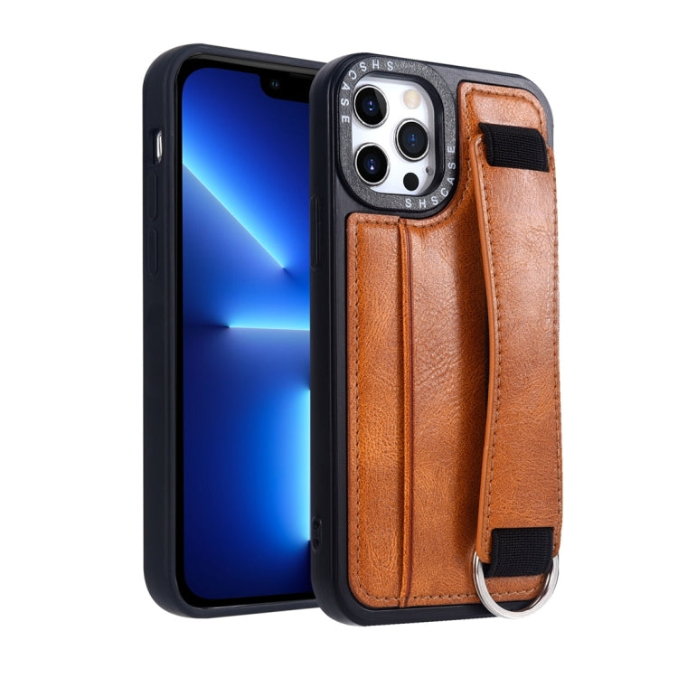 Funda para iPhone 13 Pro Marco de Fotos Tarjeta Monedero Correa para Muñeca Contraportada (Marrón)