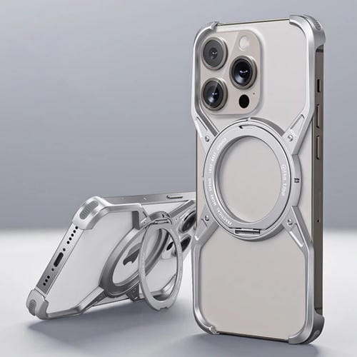 Estuche para Teléfono iPhone 13 Pro Max y 14 Pro Max Giratorio 360 Grados sin Marco Aleación de Aluminio (Plateado)