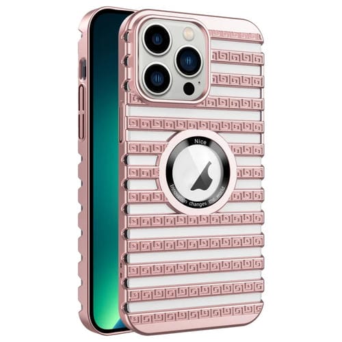 For iPhone 13 Pro Max Electroplated Hollow Phone Case with Cooling Ladder(Pink)