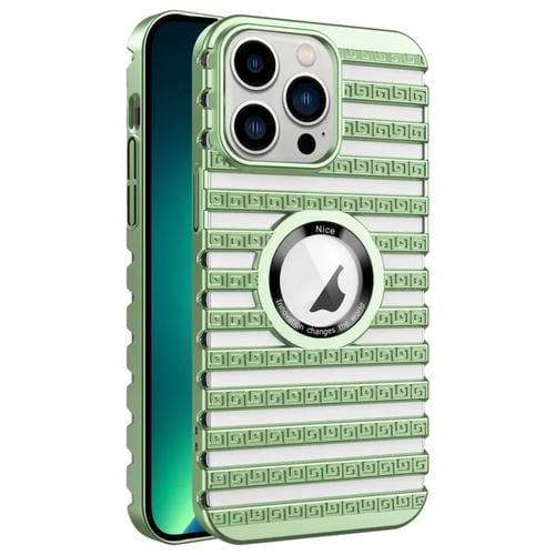 For iPhone 13 Pro Max Electroplated Hollow Phone Case with Cooling Ladder (Green)