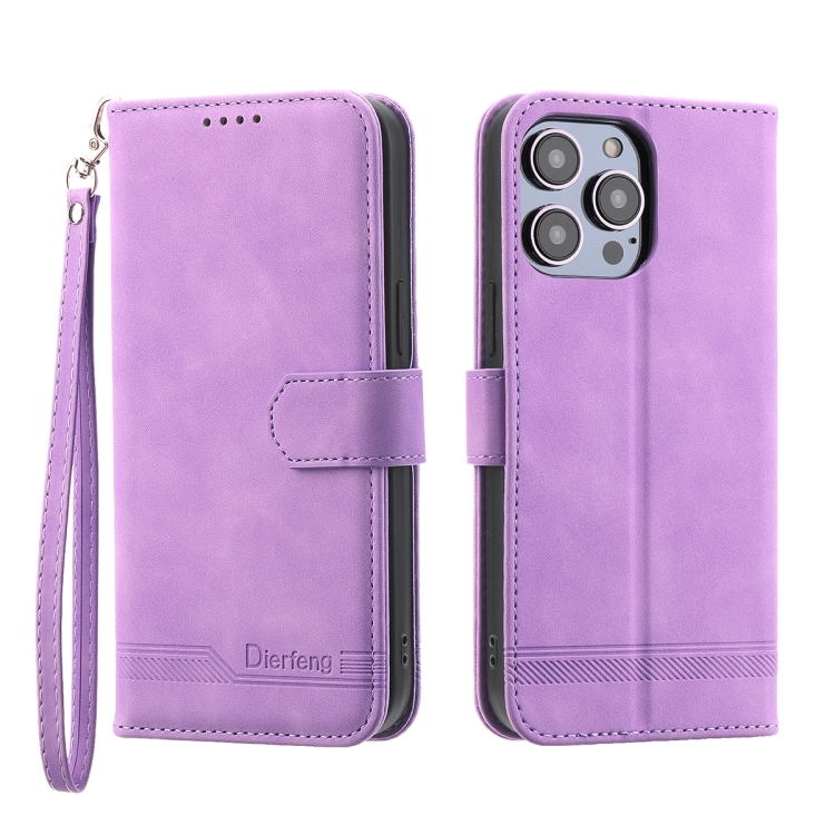 Funda para iPhone 13 Pro Max Dierfeng Dream Line TPU y Cuero PU (Púrpura)