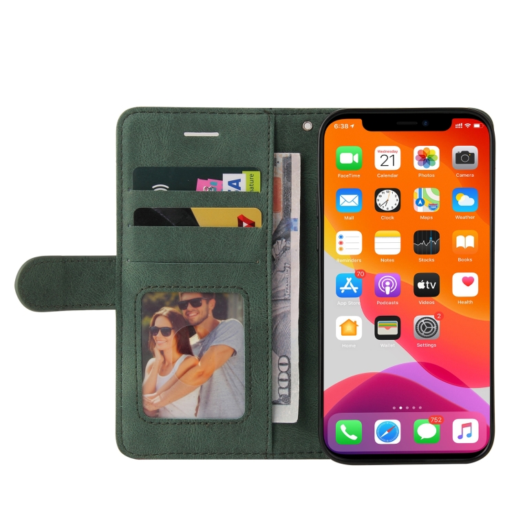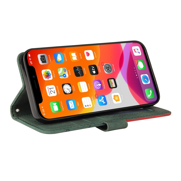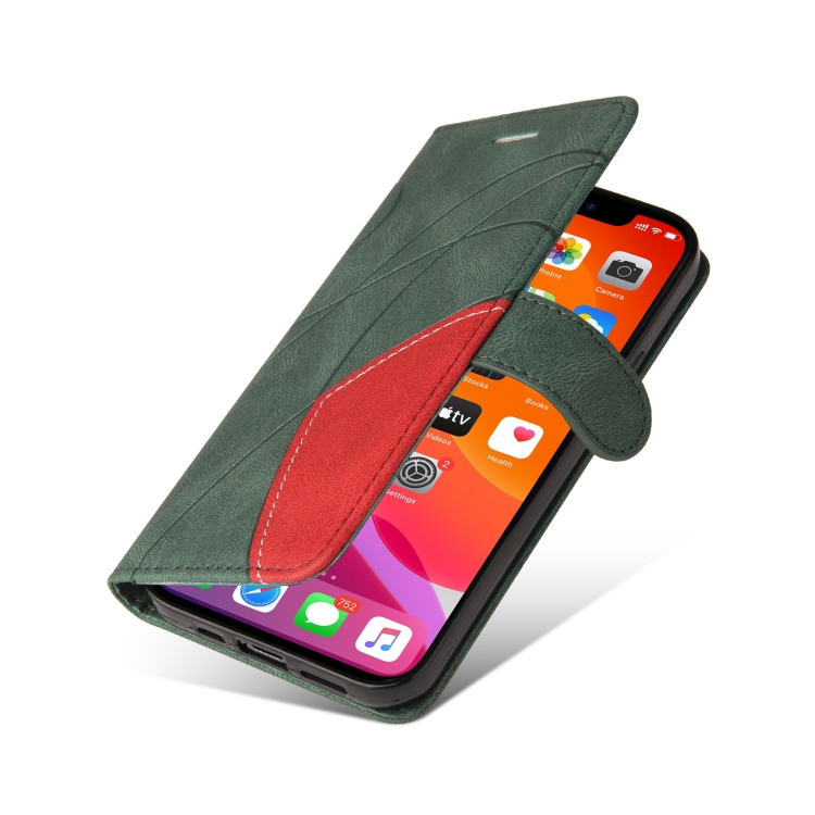 Estuche para iPhone 13 Pro Max Cuero de Pu Tapa Horizontal Dos Colores Soporte Ranuras Tarjetas Billetera (Verde)
