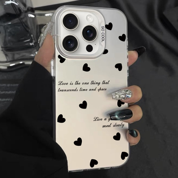 Estuche híbrido para iPhone 13 Pro Max TPU y PC con pintura plateada (Corazones de amor blancos)