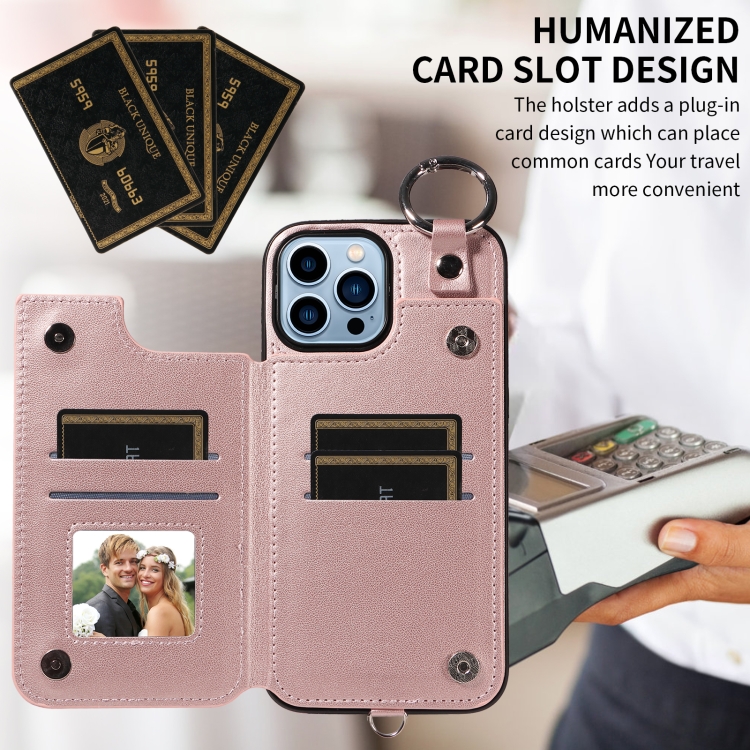 5. Diseño portátil: Equipado con una hebilla de anillo y una correa de mano corta, lo que hace que sea conveniente llevar su teléfono móvil cuando sale.