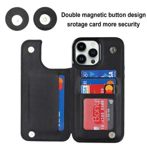Estuche para Teléfono iPhone 13 Pro Max Cuero de PU Rombal con Doble Hebilla (Negro)