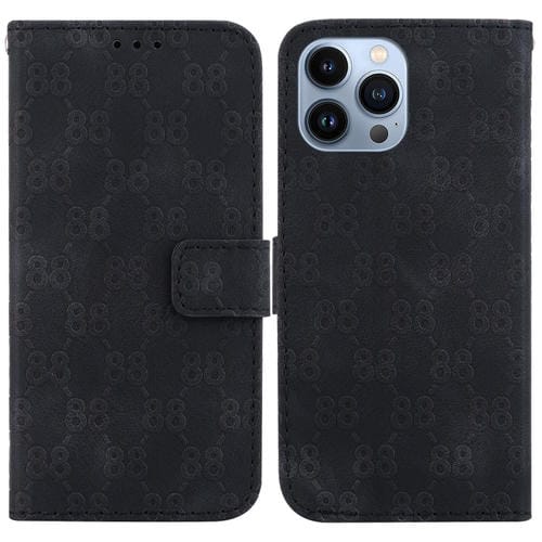 Estuche para teléfono iPhone 13 Pro Max cuero en relieve doble forma de 8 (Negro)