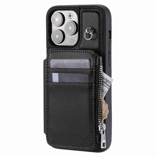 Estuche para Teléfono iPhone 13 Pro Max Rfid Ranuras para Tarjetas con Cremallera (Negro)
