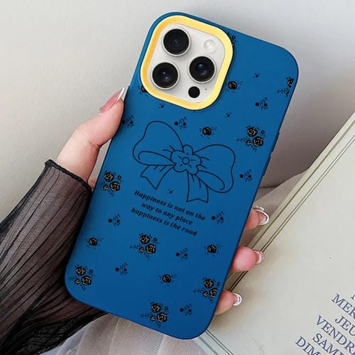 Funda híbrida para iPhone 13 Pro Max Floral Bow PC TPU (Azul Real)
