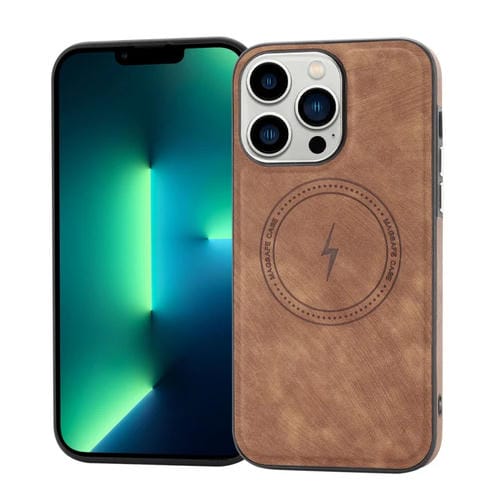 Funda de Teléfono iPhone 13 Pro Max Magsafe Cuero Lateral (Marrón)