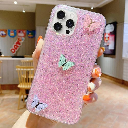 For iPhone 13 Pro Max Starry Sequins Rhinestone Epoxy TPU Phone Case(Pink)