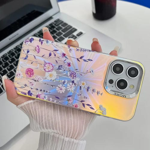 Funda TPU para iPhone 13 Pro Max Galvanoplastia Láser Flor Textura (Lavanda)