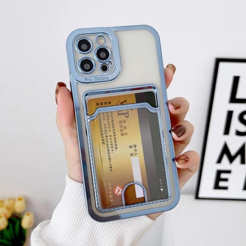 Marco para teléfono iPhone 13 Pro Max Galvanoplastia Ranura para Tarjeta (Azul)