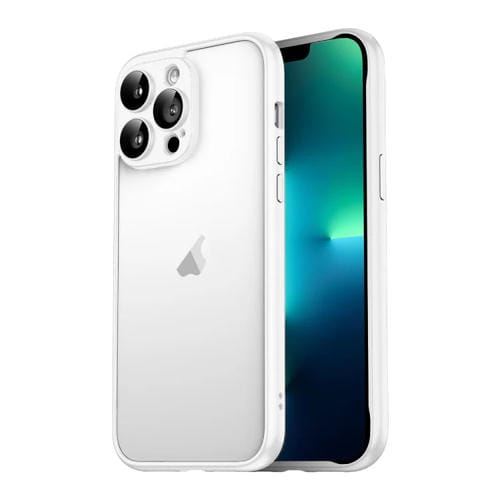 Funda para iPhone 13 Pro Max Macaron PC con Marco de Borde y Película de Vidrio para Lente (Blanco)