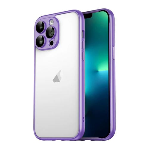 Funda PC Marco de Borde para iPhone 13 Pro Max con Película de Vidrio para Lentes (Púrpura)