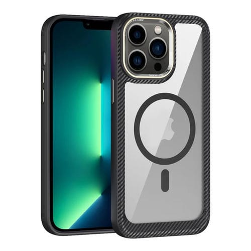 Caja de Teléfono iPhone 13 Pro Max Magsafe Panel Posterior Transparente Fibra de Carbono (Negro)