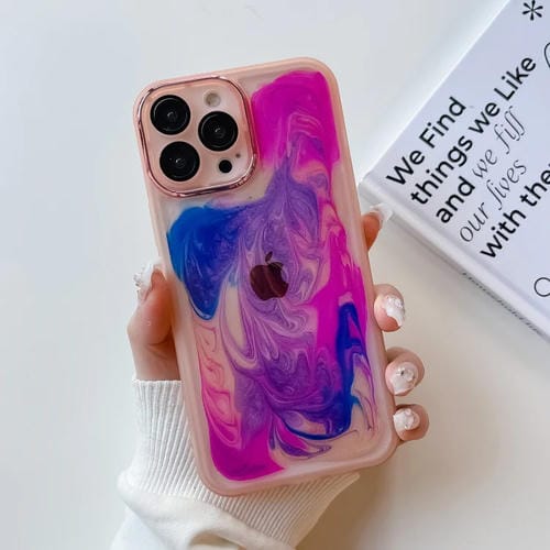Funda para iPhone 13 Pro Max TPU Pintura al Óleo Galvanoplastia (Rosa)