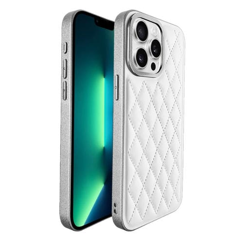 Estuche para Teléfono iPhone 13 Pro Max Plaid Series 9D Galvanizado (Plata Titanio)