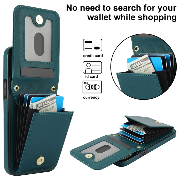 For iPhone 13 Pro Max YM015 RFID Phone Case with Rhombic Crossbody Card Bag (Green)