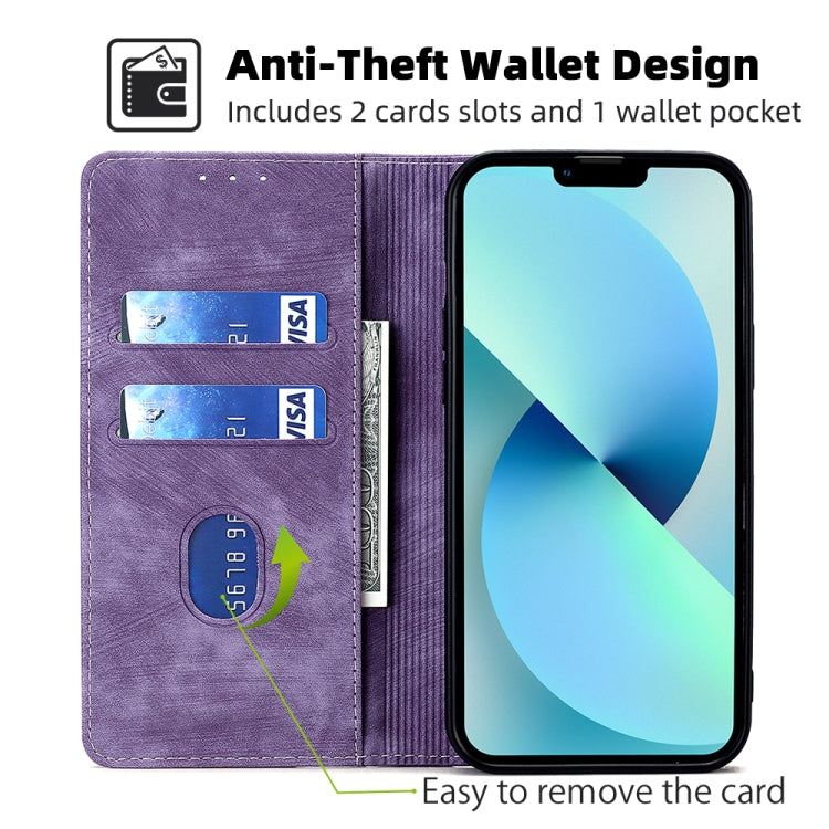 Funda de Cuero Magnético para iPhone 13 Pro con Protección RFID y Cepillo Antirrobo (Púrpura)