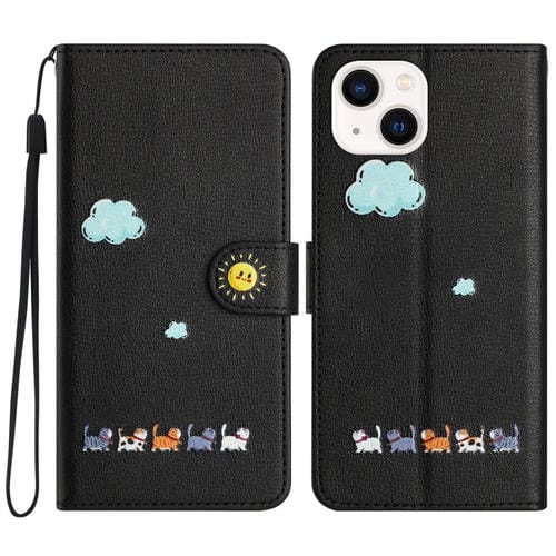 Funda para Teléfono iPhone 14/13 Cuero Gatos Dibujos Animados (Negro)