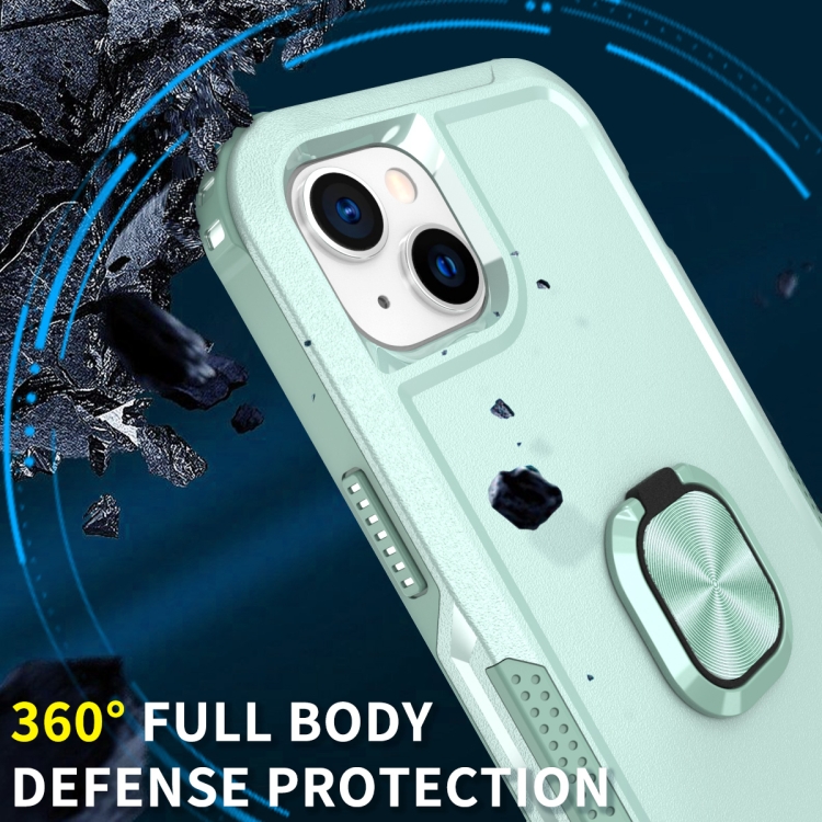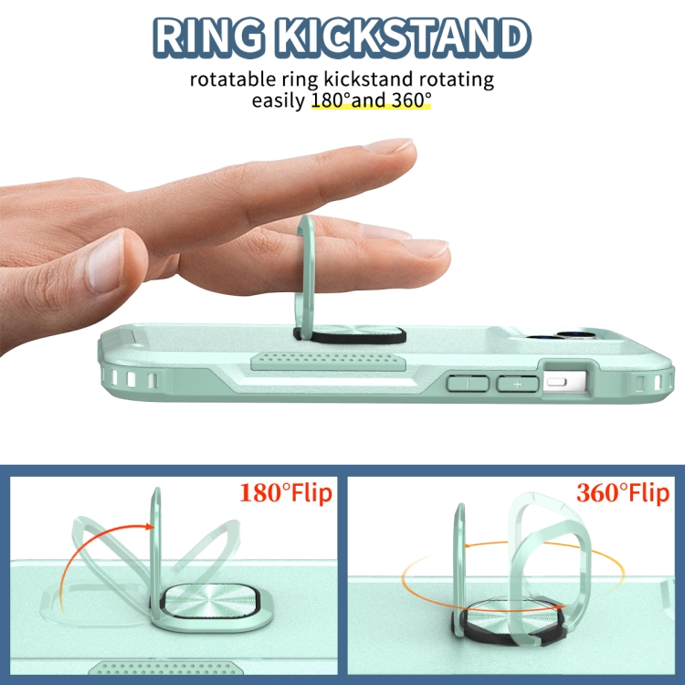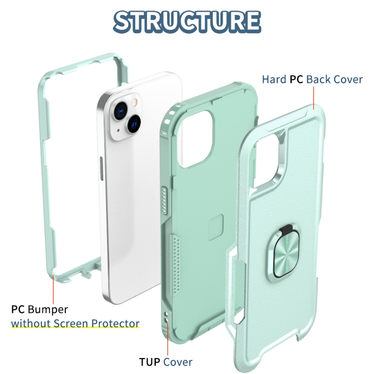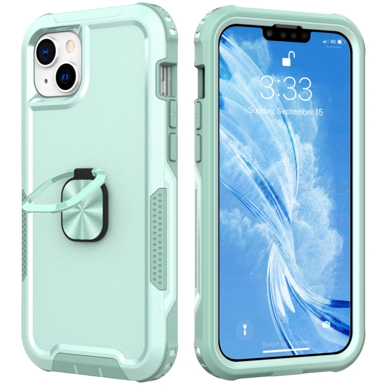 Funda para teléfono iPhone 14 3 en 1 con soporte de anillo (Verde Menta)
