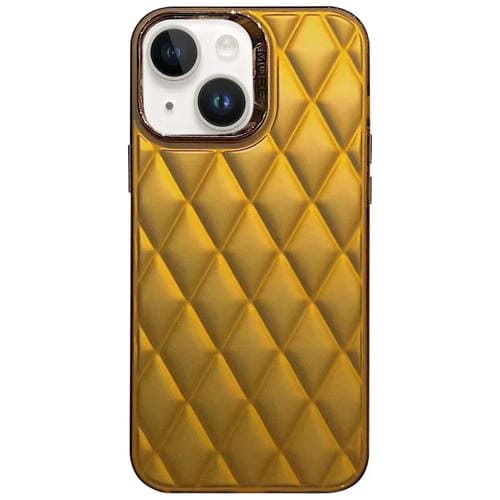 Funda para iPhone 14 3D Rhombus Galvanoplastia TPU Híbrida para PC (Oro)