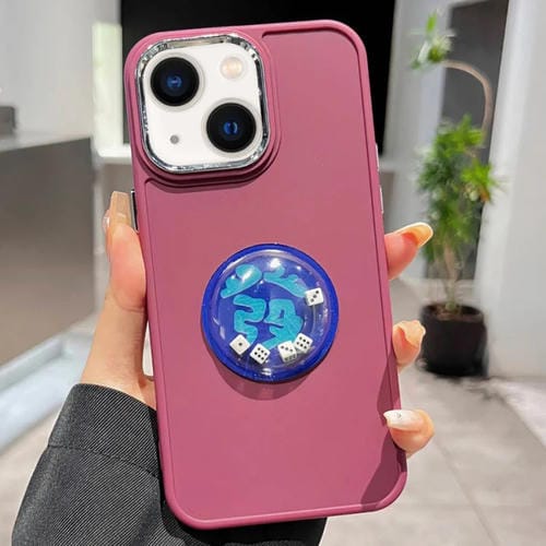Anillo de Lente Electrochapado para iPhone 14 con Funda y Dados (Rojo Vino)