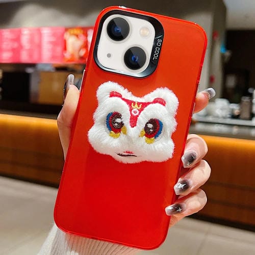 Caja para iPhone 14 Felpa Danza del León Año Nuevo (León Blanco Trasero Rojo)