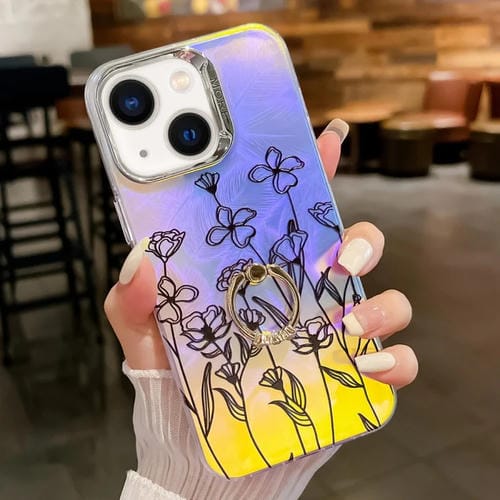 Caja de Teléfono TPU para iPhone 14 con Soporte de Anillo y Diseño de Flor Láser