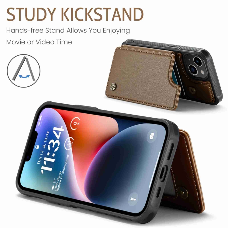Estuche para teléfono Caseme C22 para iPhone 14 antirrobo con ranuras para tarjetas Rfid (Marrón)