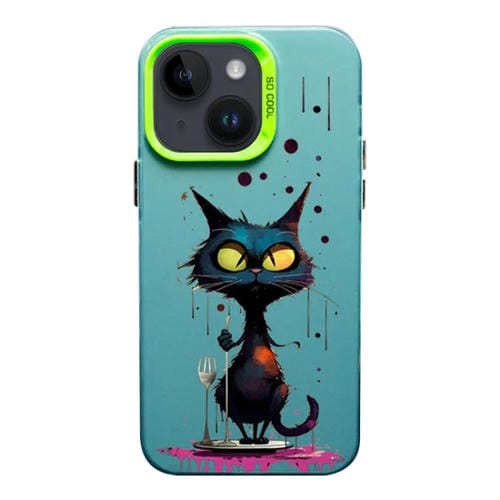 Funda para iPhone 14 Color Ink Frosted PC y Estuche TPU Gato Negro