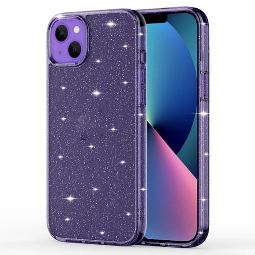 Funda para Teléfono iPhone 14 Crystal Clear Glitter Airbag (Púrpura Transparente)