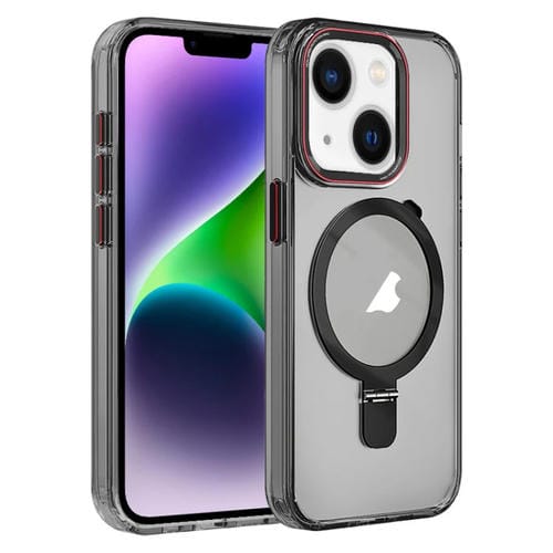 Funda para Teléfono iPhone 14 Crystal TPU Hybrid PC Magsafe Holder (Negro Transparente)