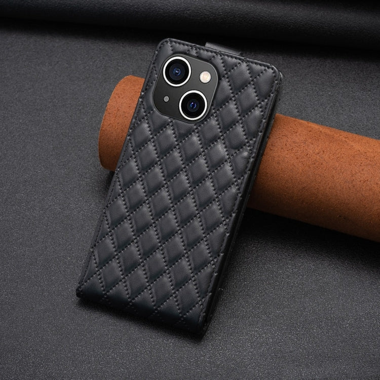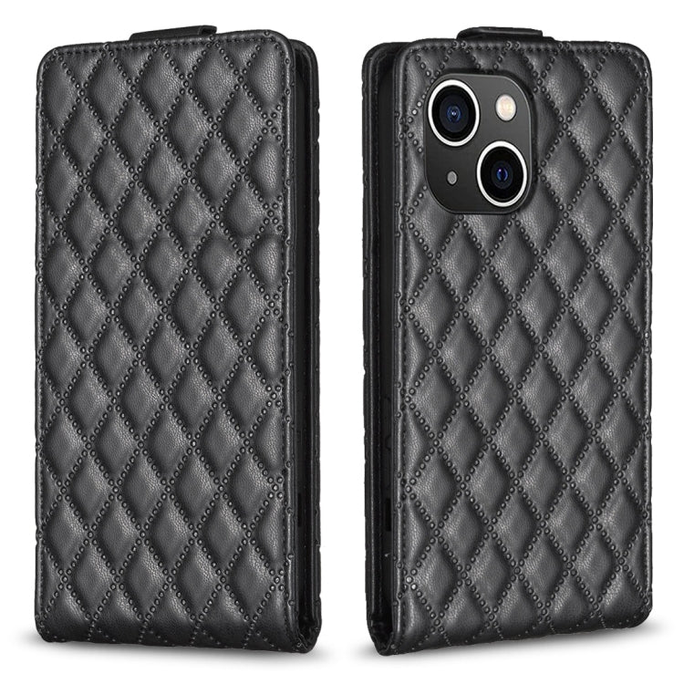 Funda para iPhone 14 Diamond Lattice Vertical Flip de Cuero (Negro)