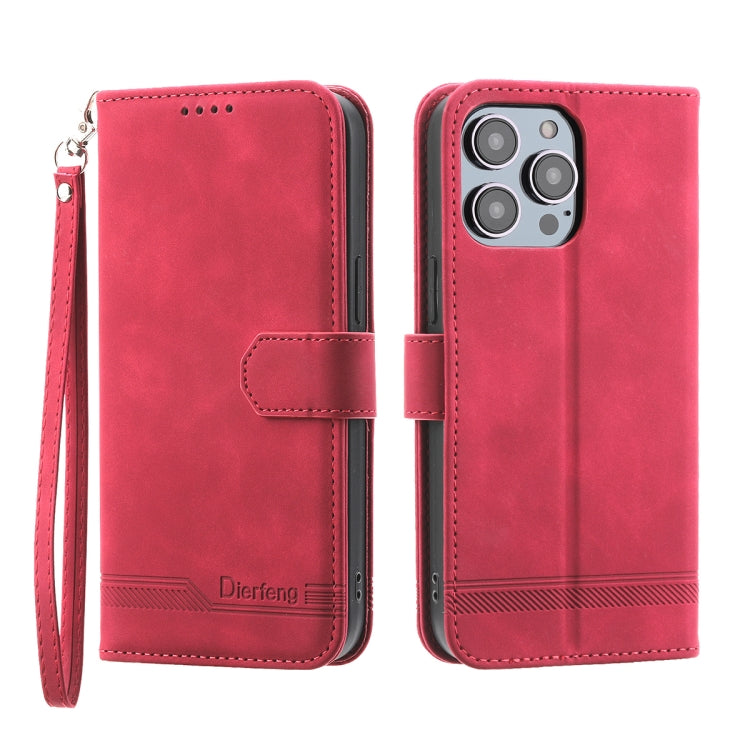 Funda para iPhone 14 Dierfeng Dream Line TPU y Cuero PU (Rojo)