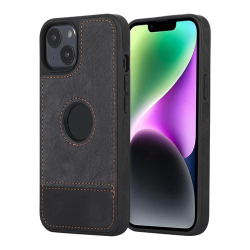 Funda para iPhone 14 Empalme Costura Caja de Teléfono de PU con Recorte Hueco (Negro)