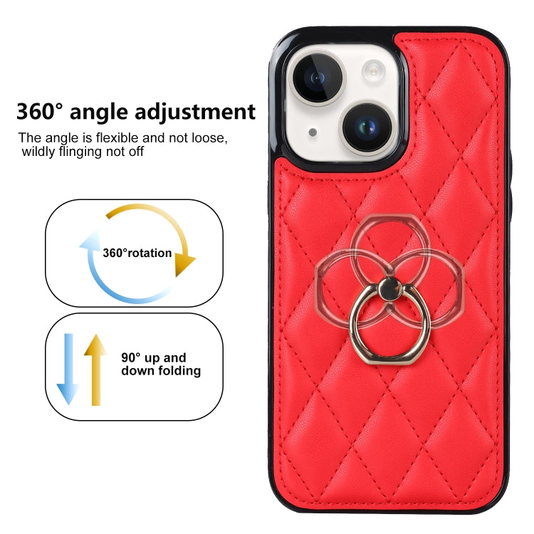 Estuche de Teléfono Cuero PU Rómbico con Soporte para Anillo para iPhone 14 (Rojo)