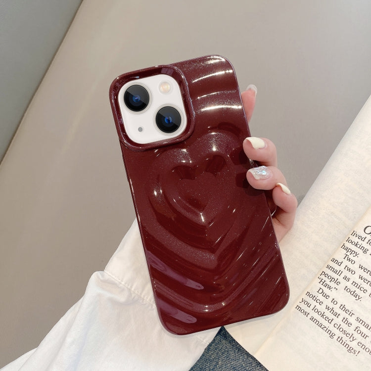 Estuche para Teléfono iPhone 14 con Patrón de Amor 3D (Rojo Vino)