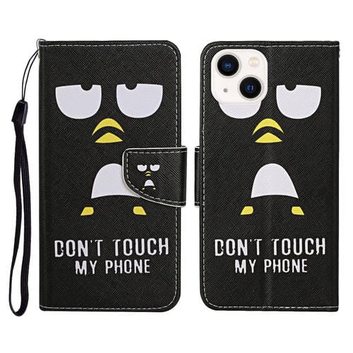 Estuche para Teléfono iPhone 14 Cuero con Tapa Dibujo Color 3D (Pingüinos)