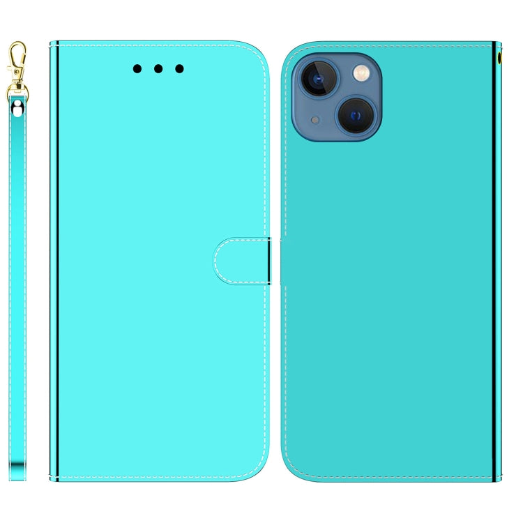 Estuche para Teléfono iPhone 14 Cuero con Superficie de Espejo Imitado (Verde Menta)