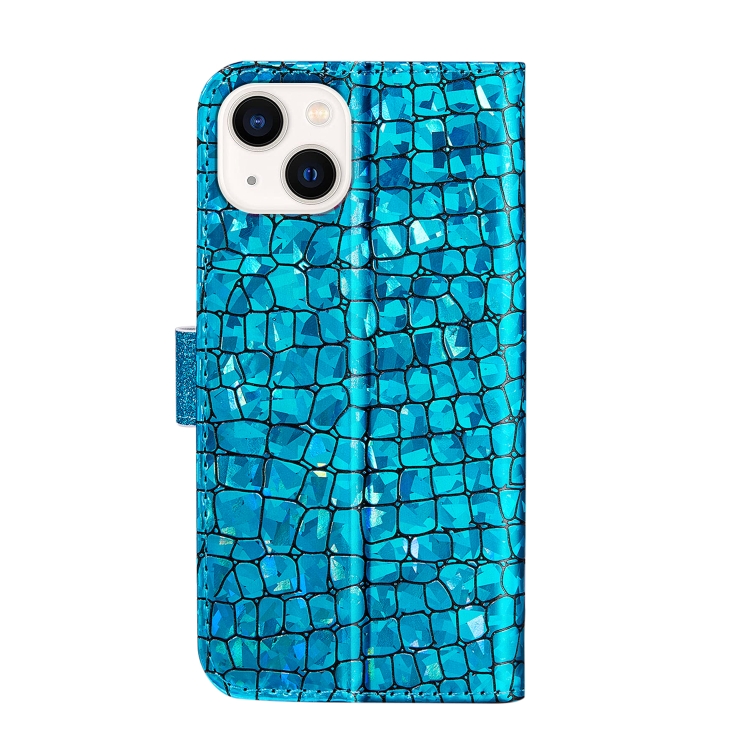 Estuche para Teléfono iPhone 14 Cuero Textura Cocodrilo Brillo Láser (Azul)