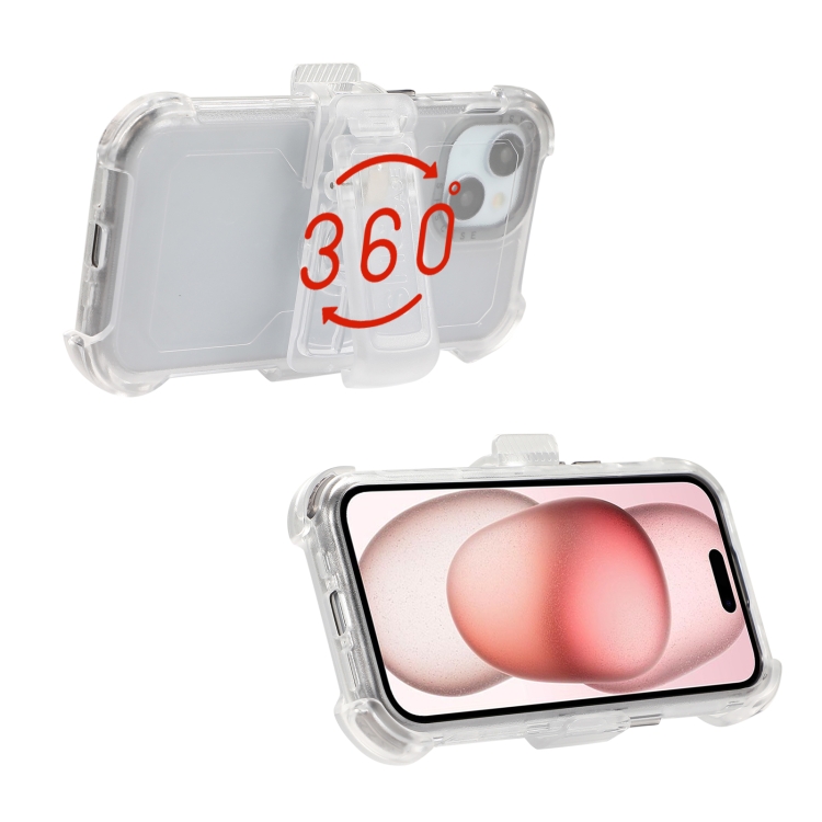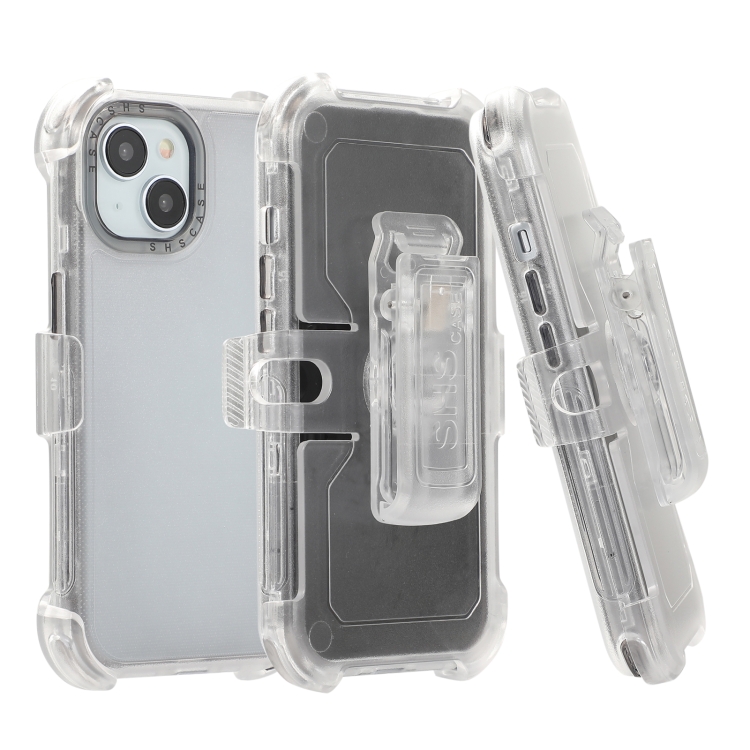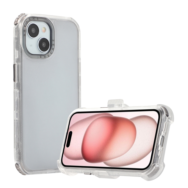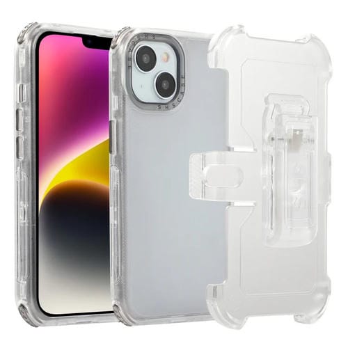 Estuche para teléfono iPhone 14 Frosted PC + TPU con clip trasero (Negro Transparente)