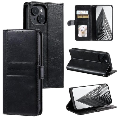 Funda de Cuero para Teléfono iPhone 14 con Billetera Simple para 6 Tarjetas (Negro)