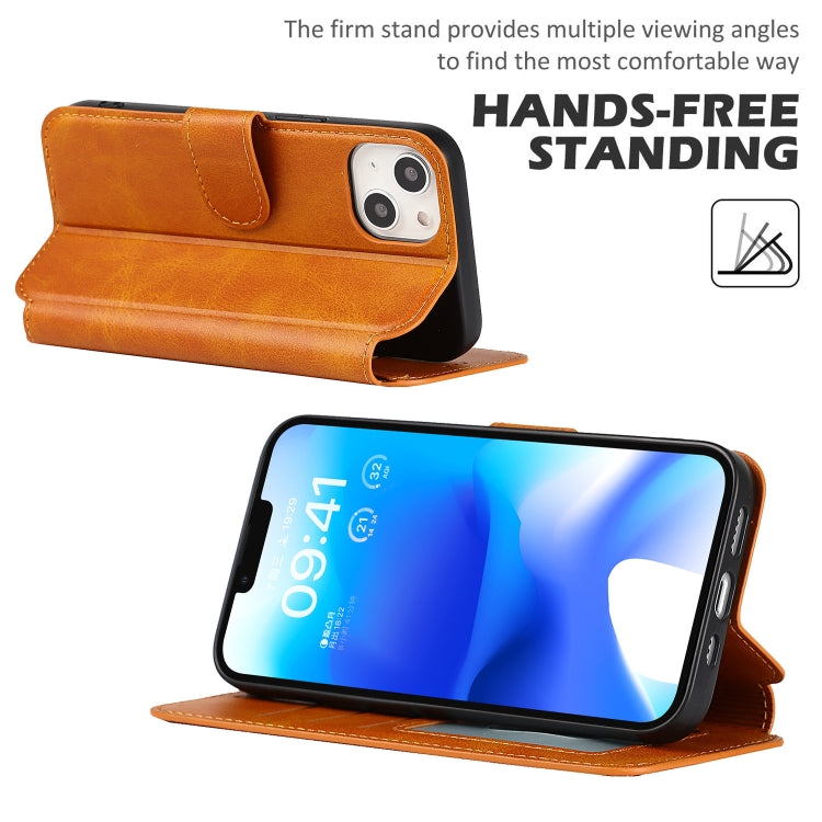 Funda de Teléfono iPhone 14 Cuero Pu + TPU a Prueba de Golpes (Caqui)