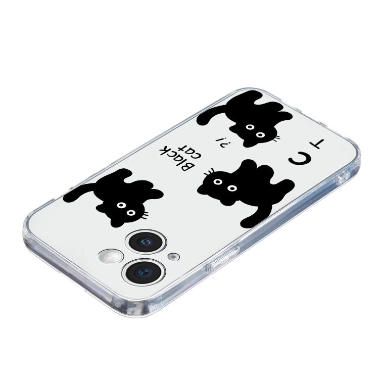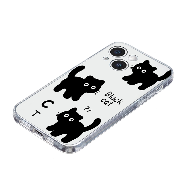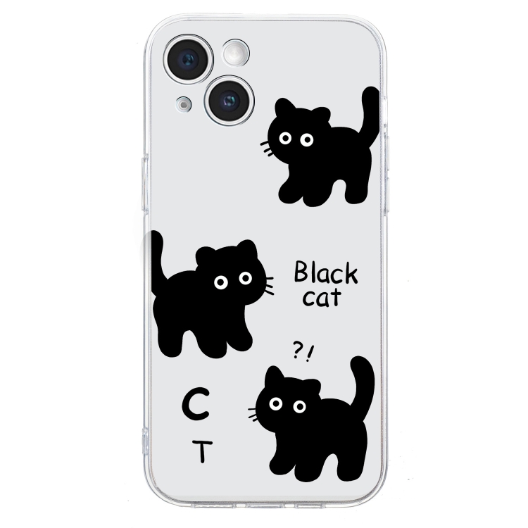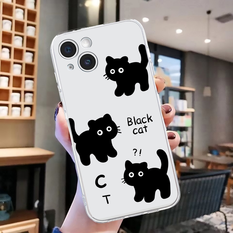 Funda de teléfono TPU iPhone 14 patrón dibujo colores (Gato Negro)