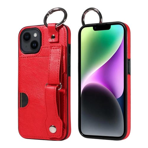 Funda para Teléfono iPhone 14 con Anillo y Ranura para Tarjeta Textura de Pantorrilla (Rojo)