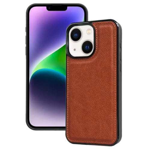 Funda para Teléfono iPhone 14 con Contraportada Textura Piel de Vaca (Marrón)