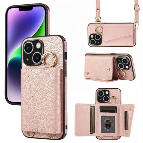 Funda para Teléfono iPhone 14 Contraportada Cuero Billetera Anillo (Rosa)