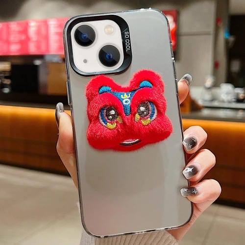 Funda para Teléfono iPhone 14 Muñeco de Peluche Danza del León Año Nuevo (León Rojo) (Gris)