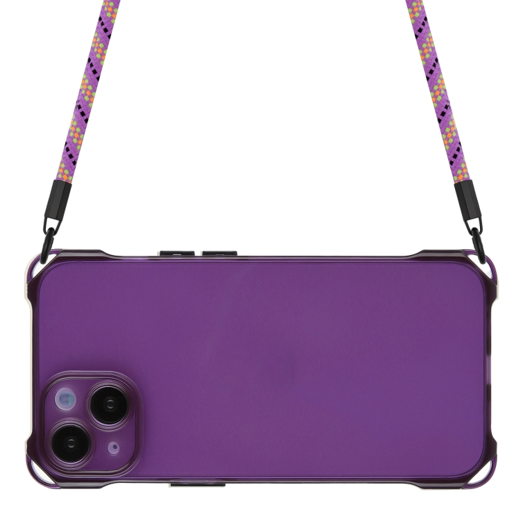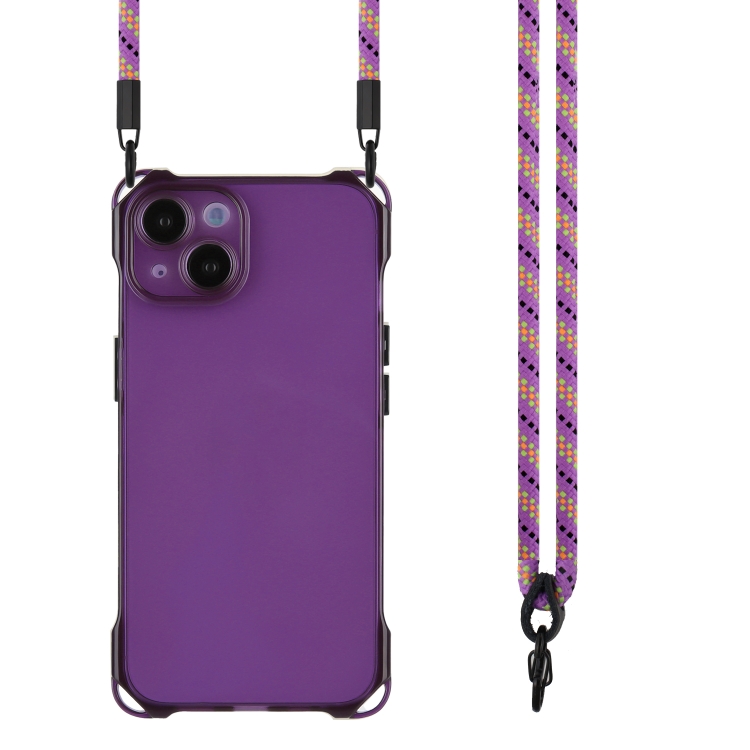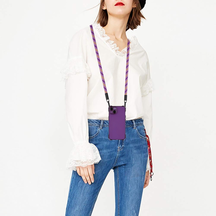 Funda para Teléfono TPU iPhone 14 a Prueba de Golpes de Cuatro Esquinas con Cordón (Púrpura)